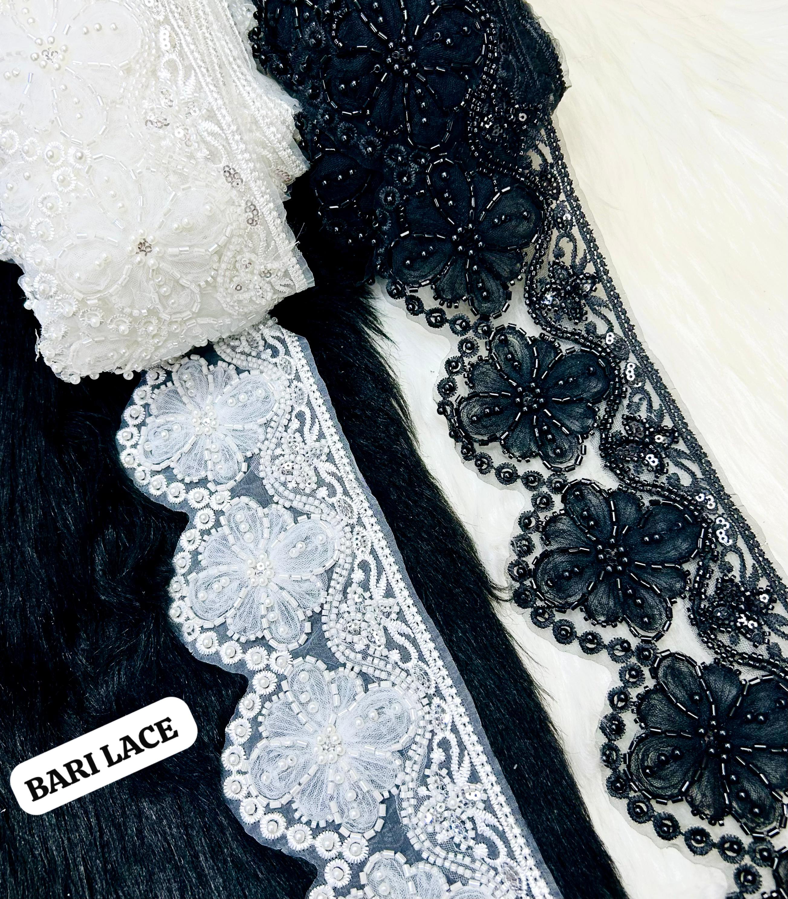 Hand-Beaded 3D Floral Appliqué Lace